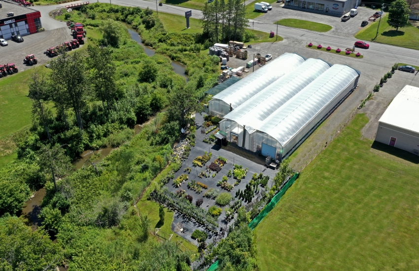 - Trois grandes serres de 9 000 pi²